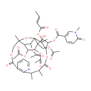SMILESO1[C@@]23[C@@]4([C@H](OC(=O)C)[C@H](OC(=O)C)[C@H]([C@H]2OC(=O)C)[C@@]1(COC(=O)c1c(nccc1)[C@@H]([C@@H](C(=O)O[C@@H]([C@@]3(O)C)[C@H](OC(=O)c1cn(c(=O)cc1)C)[C@@H]4OC(=O)/C=C/C)C)C)C)COC(=O)C